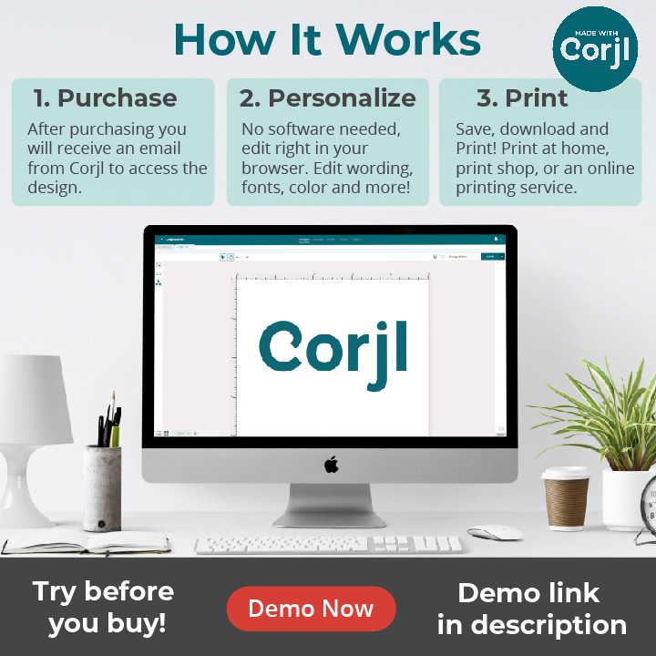After checkout is complete and your payment has processed, You will receive an email within minutes from Corjl at the email address associated with your order. The email will contain a direct link which can be used to access your template in Corjl.Be sure to check your spam or promotions folder if you don’t see the email. PLEASE NOTE: You must sign up for a FREE account at Corjl.com to access your template.