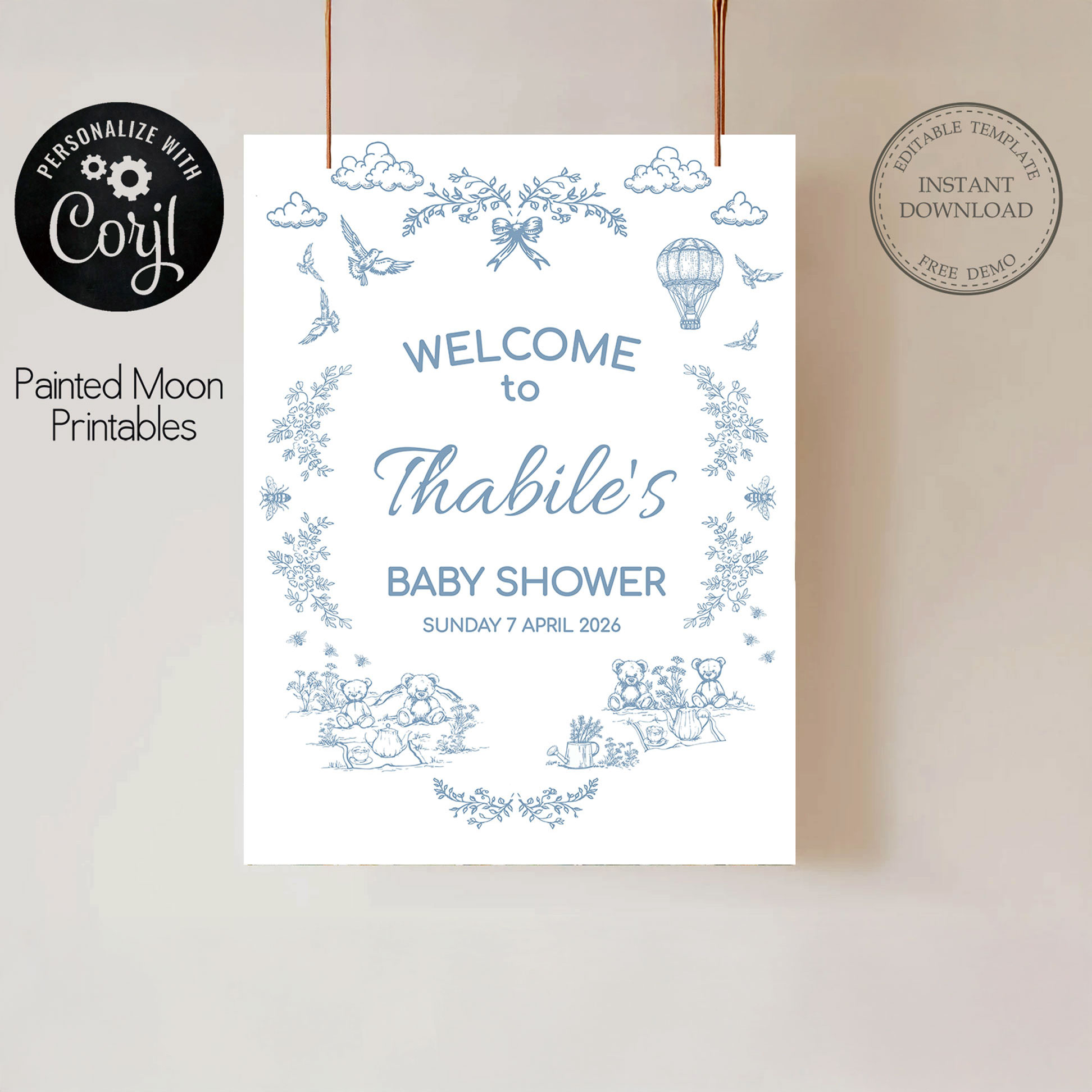 Printable teddies picnic toile baby shower A1 landscape sign n light blue. All our designs are hand drawn ,no AI involved . We love what we do and offer our customers unique products that cannot be found anywhere else.
